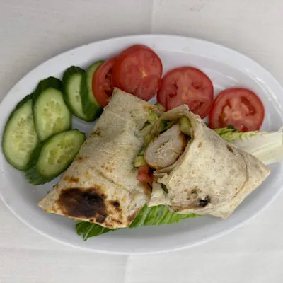 Thinly sliced, juicy tender chicken breast served with a side of tomatoes, cucumber and lettuce over home-style tahini sauce